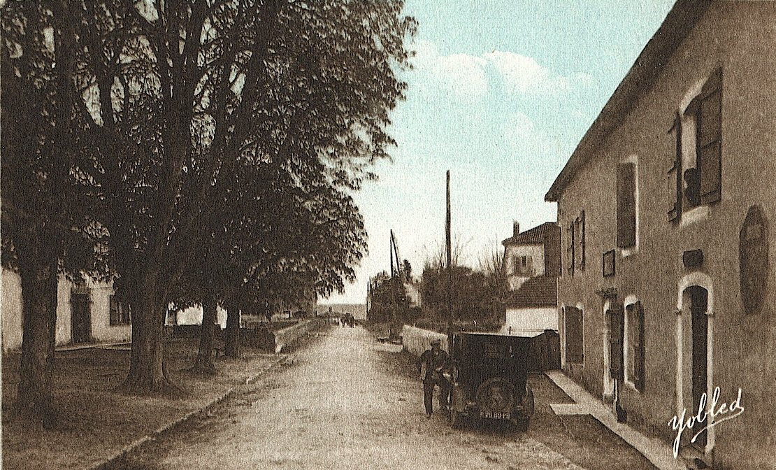 À noter, sur la gauche de l’image, la présence de grands arbres qui bordaient alors la place du village, aujourd’hui disparus.