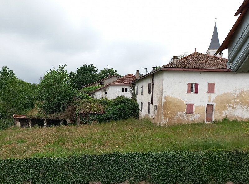 La maison d’origine Hiriart, photographiée en 2022, a changé plusieurs fois d’appellation au fil du temps. Elle est devenue Hiriart vieux lorsqu’une seconde maison (ci-dessus) fut construite au cours du XVIIIᵉ siècle, puis plus récemment appelée la grange de Hiriart, selon son dernier usage, avant d’être abandonnée au début des années 1970. Elle ne se visite pas.